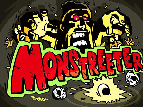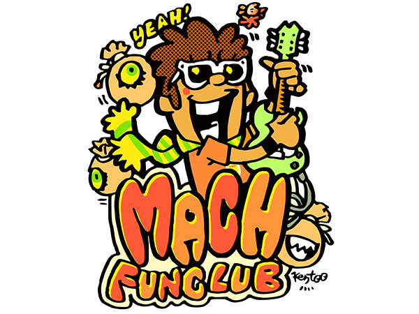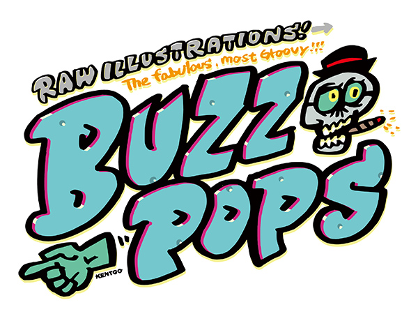 キャラクターと手描き風POPロゴのサンプルです